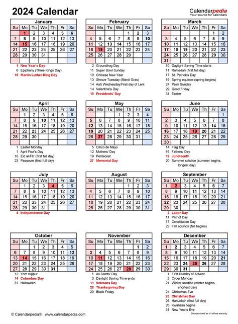 2024 Printable Calendar with Holidays from editablecalendar.com— editablecalendar.com
